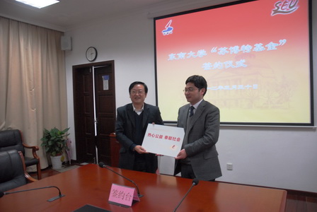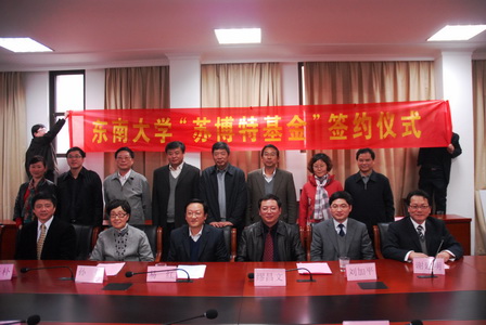 在東南大學(xué)110周年校慶前夕,3月30日,由江蘇博特公司設(shè)立的“蘇博特基金”簽約儀式在東南大學(xué)隆重舉行。東南大學(xué)易紅校長(zhǎng)、孫偉院士和公司董事長(zhǎng)繆昌文院士出席儀式并講話。東南大學(xué)研究生院院長(zhǎng)金寶昇教授、學(xué)生處處長(zhǎng)李鑫教授及材料學(xué)院、土木工程學(xué)院、交通學(xué)院相關(guān)領(lǐng)導(dǎo)共同參加了此次活動(dòng)。儀式由東南大學(xué)校長(zhǎng)助理謝建明教授主持。劉加平總經(jīng)理與東南大學(xué)副校長(zhǎng)浦躍樸教授共同簽署了協(xié)議書,并向?qū)W校遞交了捐贈(zèng)支票。