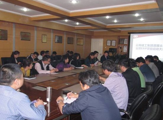 混凝土部信息化分管副總經理吳坤在會上做了動員講話,并宣布了成立ERP項目組的決定,設備信息科為信息化建設的職能部門。軟件開發方蘇州迪晟軟件公司ERP實施顧問分別介紹了云南建工集團有限公司商品混凝土部ERP建設總體情況,實施步驟,實施時間計劃和實施過程的要求。同時,各參與部門負責人在動員會上做了表態發言,表示全力參與配合ERP建設工作。