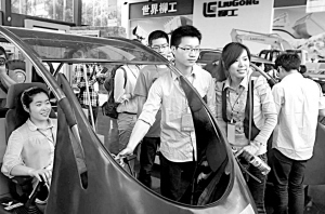 當(dāng)日上午,“優(yōu)秀人才接觸柳州”考察團(tuán)首先來(lái)到柳工。柳工企業(yè)展廳內(nèi)展出的各種機(jī)械類產(chǎn)品,引起學(xué)子們的極大興趣。一些機(jī)械相關(guān)專業(yè)的學(xué)生摸摸這,摸摸那,有的還忍不住打開(kāi)駕駛室的門(mén)來(lái)看個(gè)究竟。現(xiàn)場(chǎng)有兩臺(tái)造型可愛(ài)的模擬教學(xué)儀,很吸引眼球。通過(guò)這一儀器,每個(gè)人可以在各種模擬的場(chǎng)景中練習(xí)工程機(jī)械操作。有學(xué)生打開(kāi)了教學(xué)儀,坐上駕駛位,并按照顯示屏的指示操作起來(lái),過(guò)了把開(kāi)挖掘機(jī)的癮。