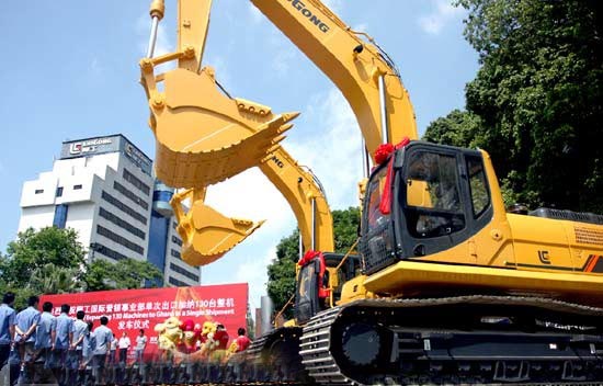近日,柳工集團(tuán)單次出口加納130臺(tái)整車發(fā)車,將駛向有黃金海岸之稱的加納。據(jù)了解,從2010年9月至今,柳工在加納市場(chǎng)已經(jīng)銷售了429臺(tái)挖掘機(jī),23臺(tái)推土機(jī),實(shí)現(xiàn)銷售收入6074萬美金,在出口到加納的中國(guó)品牌挖掘機(jī)中,柳工市場(chǎng)占有率達(dá)到70%以上。另一批出口泰國(guó)的整車也將在本月15日發(fā)車,一季度以來,柳工向泰國(guó)市場(chǎng)銷售了300輛挖掘機(jī)和推土機(jī)。