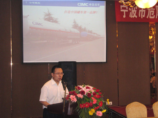 會(huì)上,寧波危險(xiǎn)化學(xué)品運(yùn)輸協(xié)會(huì)安排了三家協(xié)辦單位發(fā)言。由于中集凌宇是首次參加會(huì)議,會(huì)議安排中集凌宇市場(chǎng)部部長(zhǎng)常國強(qiáng)做重點(diǎn)介紹。常國強(qiáng)首先感謝協(xié)會(huì)提供一個(gè)良好的平臺(tái),讓中集凌宇有機(jī)會(huì)和寧波危險(xiǎn)化學(xué)品運(yùn)輸企業(yè)進(jìn)行全面、系統(tǒng)的交流,讓大家能夠了解中集凌宇,了解中集凌宇的液罐車。然后,對(duì)公司情況、液罐車產(chǎn)品特點(diǎn)和洛陽的情況進(jìn)行了簡(jiǎn)練的介紹,10分鐘的發(fā)言時(shí)間不長(zhǎng),但洛陽中集凌宇的企業(yè)形象和專業(yè)生產(chǎn)罐車的定位讓參會(huì)來賓留下了深刻的印象。