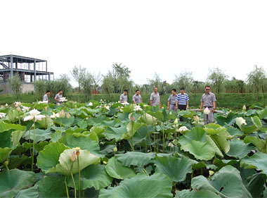 部分高管興致勃勃觀滿池塘盛開的荷花