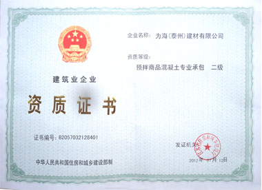 7月12日,為海(泰州)建材有限公司通過江蘇省住房和城鄉(xiāng)建設(shè)廳批準(zhǔn),并經(jīng)過一個(gè)月的公示無異,原三級資質(zhì)成功晉升為預(yù)拌商品混凝土專業(yè)承包二級資質(zhì),此為預(yù)拌商品混凝土行業(yè)最高資質(zhì),可生產(chǎn)各種強(qiáng)度等級的混凝土和特種混凝土。據(jù)悉,為海(泰州)建材有限公司是泰州地區(qū)唯一具備二級資質(zhì)的混凝土企業(yè)。