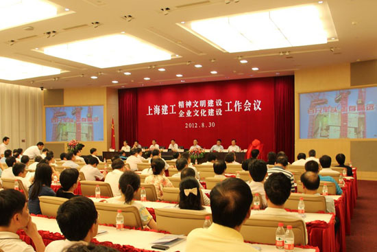 8月30日,上海建工集團召開2012年度精神文明建設暨企業文化建設工作會議。集團黨政領導、各單位黨政負責人、分管領導、集團委派重大項目聯合黨委書記、黨建工作指導員及集團各部門負責同志等200余人參加了會議。集團黨委書記蔣志權出席會議并對進一步做好集團下一階段的企業文化和精神文明建設工作提出要求,集團黨委副書記、董事長、總裁徐征主持會議。會上,與會同志共同觀看了反映集團2011年精神文明建設與企業文化建設成果的錄像片——《百尺竿頭,志存高遠》;集團黨委副書記范忠偉宣讀了集團2011年度精神文明“雙十佳”獲獎名單;集團紀委書記郭雪林和集團副總裁杭迎偉共同為集團企業文化建設成果匯編《文化薈萃》一書的發行揭幕;一建集團、市安裝公司和構件公司王明牛分別在會上作了發言交流,集團黨委宣傳處、企業文化處就關于完善集團理念體系的相關內容進行了解釋說明。