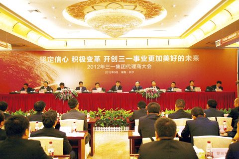 9月8日,全國各地170多家代理商齊聚長沙,參加三一集團2012年度代理商大會。這是三一首次召開全國性的代理商大會。會上,三一重工董事長梁穩根再次作了《堅定信心,積極變革,開創三一事業美好未來》的主題報告,與代理商分享三一半年度經營工作狀況。他強調,代理商是三一最核心的資產之一,任何時候,三一都將與代理商風雨同舟,團結共進。三一將用幾十年積累下來的經驗、實力、品牌,幫助代理商成功。