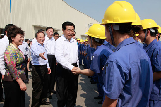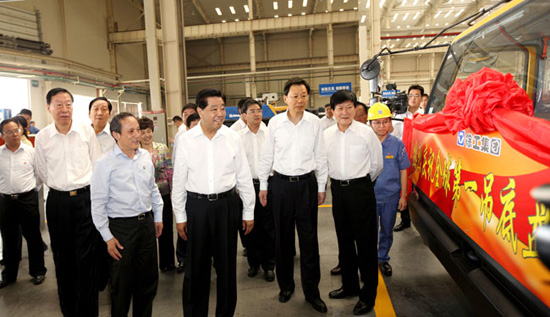 9月16日,在這個收獲的金秋季節,中共中央政治局常委、全國政協主席賈慶林在江蘇省委書記羅志軍,省長李學勇,省委常委、秘書長樊金龍,徐州市委書記曹新平,市長朱民,市人大主任劉忠達,市政協主席莊華平等的陪同下視察徐工集團。公司董事長、黨委書記王民匯報了徐工集團發展情況,賈慶林主席勉勵徐工集團再接再厲,力爭創造更多的全球第一,保持徐工工程機械行業龍頭老大的地位。
