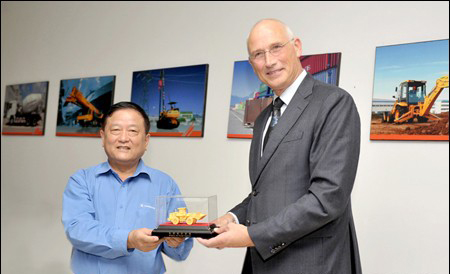 王曉華首先對本·斯浩登副市長一行的到訪表示熱烈歡迎。他回顧了今年6月份柳工歐洲有限公司從荷蘭阿姆斯特丹喬遷至阿爾梅勒市,與出席遷址慶典儀式的市長安娜瑪麗·約里斯瑪女士親切會晤的情景,并希望本·斯浩登此次訪問能加深彼此的了解。本·斯浩登轉達了安娜瑪麗·約里斯瑪女士對王曉華董事長的問候。他說,很期待此次訪問。柳工作為國際化的知名企業落戶阿爾梅勒市我們感到十分的榮幸,我們愿對柳工歐洲有限公司提供各方面的支持與服務,希望通過訪問加強雙方的交流與合作。訪問期間,公司總裁助理兼國際營銷事業部總經理羅國兵向代表團一行介紹了公司國際業務的發展情況,并陪同參觀了公司文化產品展廳、挖掘機公司和柳州叉車公司。