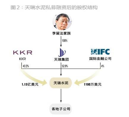 在私募資本入股之前,天瑞集團先期對其旗下的水泥業務進行了系列股權重組:首先是將天瑞水泥的股權從關聯人手上收回,使其變成了天瑞集團的全資子公司;其次是以天瑞水泥作為所有水泥業務的控股平臺,天瑞集團此前所持有的水泥子公司權益全部轉讓給天瑞水泥;再次是將各地水泥業務中關聯人、非關聯人所持有的權益,由天瑞水泥統統進行回購。幾個步驟完成之后,“天瑞集團持股天瑞水泥、天瑞水泥持股各地水泥項目公司”的格局最終形成。