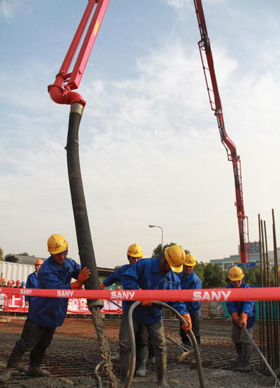 “有價值的高度才是真正的高度”,2012年11月28日,三一86米泵車在上海進行了水平泵送及現場施工。在數千名行業人士和客戶的見證下,至今仍保持泵車水平泵送距離世界紀錄的三一86米泵車進行了澆注,成為可進行現場施工的世界最長臂架泵車。在施工現場,山西恒臺建業發展有限公司與三一重工簽約,成為86米泵車的第一個客戶。