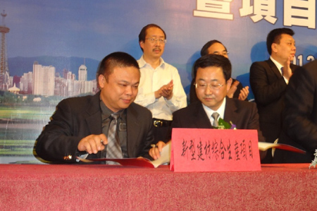 慧江集團(tuán)聯(lián)席總監(jiān)陳冰與兩縣領(lǐng)導(dǎo)現(xiàn)場簽約