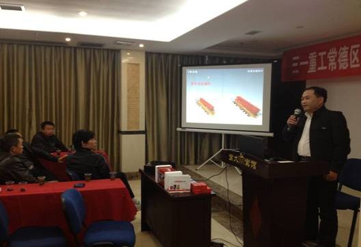 接著,湖南三一副總經(jīng)理鄒永進(jìn)先生針對(duì)安全操作知識(shí)培訓(xùn)進(jìn)行了演講。他通過(guò)放映操作視頻,PPT動(dòng)畫(huà),文檔等動(dòng)靜結(jié)合的方式,生動(dòng)活潑的講解方式調(diào)動(dòng)起了現(xiàn)場(chǎng)嘉賓學(xué)習(xí)的興趣,大家看的非常認(rèn)真,沒(méi)有一個(gè)人交頭接耳,會(huì)場(chǎng)里只聽(tīng)到鄒永進(jìn)先生認(rèn)真的講解聲。