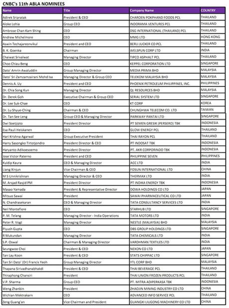 下圖為“亞洲最佳商業領袖獎”提名的企業和人員名單: