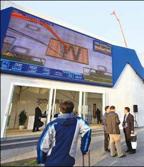 由中聯重科中央研究院聯合混凝土機械公司和電氣控制技術公司共同開發的泵車3A技術展示系統日前在上海BAUMA展會上成功展出,得到了海內外客戶的一致好評,這是行業內首個將泵車智能控制技術、虛擬現實技術和游戲制作于一體而開發完成的泵車智能控制技術展示系統,能夠使用戶在娛樂中了解、體驗和學習泵車操作技術。