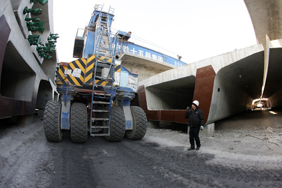 風聲、運梁車蠕動發(fā)出的轟鳴聲與鄰近村子傳來的鞭炮聲,遙相呼應,使這個地處晉中平原邊遠的小山村變得格外的熱鬧。900噸架橋機上下舞動,頂著零下20多度的低溫往來穿梭的建設(shè)者,與兩岸村民房前屋后鮮紅的彩燈相映成趣,構(gòu)成了人與自然、傳統(tǒng)與現(xiàn)代和諧的交響!第一次看到高大的運架梁等大型設(shè)備的村民們興高采烈,相互談?wù)撝@個比他們家的房子還要大的運架梁設(shè)備的感受,談?wù)摯笪骺瓦\專線將會對他們的生活帶來的新變化……有位60多歲的老人指著大型運架機械問他年僅6歲的孫兒長大后能不能也開上這樣的機器,載著他們家的房子去進城!這是元旦前夕在建設(shè)中的大西客運專線南莊特大橋900噸箱梁架設(shè)工地看到的情景。