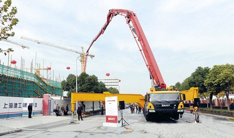 三一86米泵車是世界上可現場施工的最長臂架泵車
