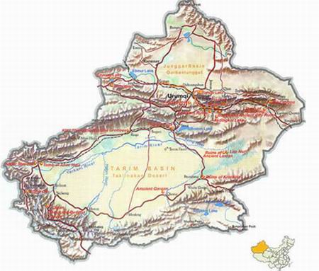 新疆的地形特點是“三山夾兩盆”。最北部為阿爾泰山,最南部為昆侖山系,天山橫斷新疆中部,將新疆分為南疆與北疆,南邊是塔里木盆地等,北邊是準格爾盆地等。受氣候、地域等因素影響,新疆大部分地區為荒漠、戈壁,經濟發展受到了極大限制。不過天山南北山麓下卻是水草豐美的綠洲,包括烏魯木齊在內的新疆絕大部分城市分布在天山山麓下的狹長地帶。