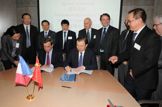 中材集團董事長劉志江、拉法基集團CEO樂峰(Bruno Lafont)代表雙方簽署戰略合作框架協議。