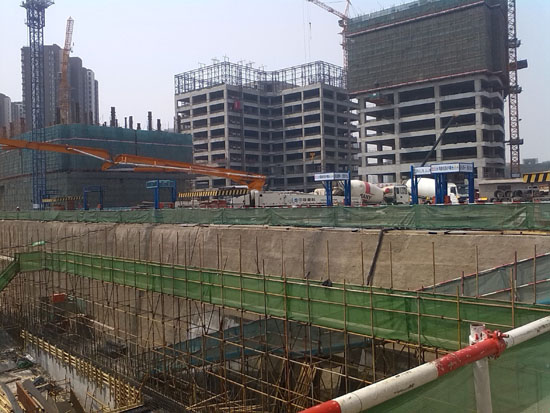 由六建公司承建的北京綠地中心項目部4#樓工程是三分公司開年的重點工程之一,鋼板剪力墻的澆筑又是技術中的重點和難點,對此,新材公司的技術系統高度重視,多次到工地與施工方進行溝通,探討施工方案及混凝土配合比設計方案。因為鋼板剪力墻施工后極易出現縱向及橫向裂紋,如何減少或消除裂紋的產生是鋼板剪力墻施工的最大難點。三分公司針對鋼板剪力墻這一特點,在清華大學的試驗室進行了普通混凝土及內養護劑、減縮劑兩種新材料的試驗,設計出新的施工配合比,從而降低總收縮值,以保證施工要求和施工效果。