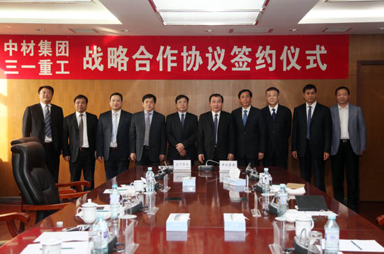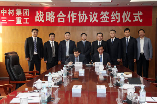 5月15日,中材集團與三一重工股份有限公司在中材集團北京總部簽署戰(zhàn)略合作框架協(xié)議。雙方表示將本著互利互惠、共謀發(fā)展的愿望,在新型材料技術和產品領域、裝備研制開發(fā)、備件供應、海外市場開拓等多個領域展開合作。