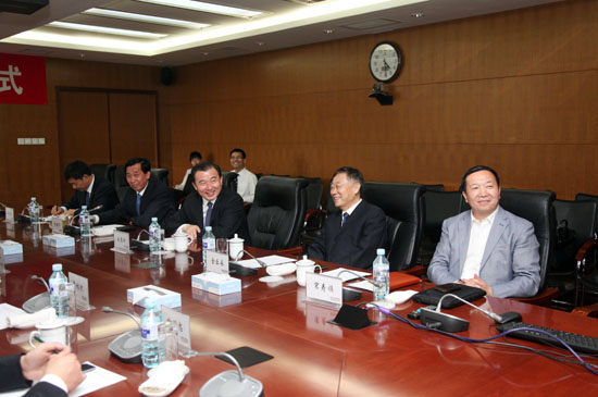 簽署協(xié)議前,中材集團董事長劉志江、總經理李新華與三一重工董事長梁穩(wěn)根、總裁向文波一行進行了會談。