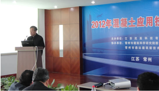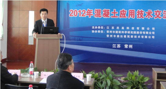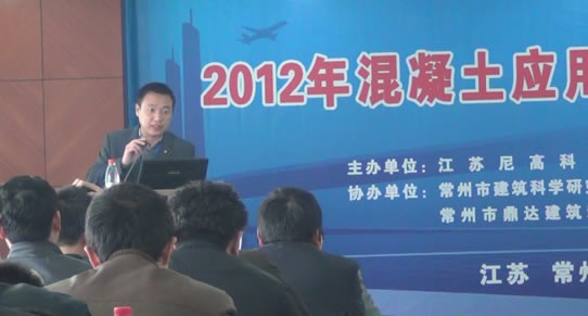 3月31日 ,由江蘇尼高科技公司主辦,常州市建筑科學研究院股份有限公司與常州市鼎達建筑新技術有限公司協辦的2012年混凝土應用技術交流會在江蘇尼高科技公司行政大樓三樓會議室隆重召開。來自江蘇、上海、安徽、浙江等省多家混凝土技術科研機構、生產企業及其他相關單位的80余位領導、專家受邀參加會議,院余榮漢董事長、楊江金總經理、陳紅根副總經理及公司相關領導、部門人員出席了會議。