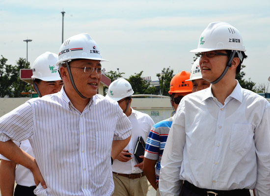 7月2日,上海市副市長、浦東新區(qū)區(qū)委書記沈曉明到上海建工集團承建中的世博B03地塊央企商飛總部基地一期工程、上海建工五建集團承建中的上海紐約大學工程調(diào)研。在后世博工地,沈曉明認真聽取了上海建工世博指揮部顧問錢培關(guān)于工程進展情況的介紹,對工程進展給與充分肯定,并表示浦東新區(qū)將全力支持世博B地塊央企總部基地建設(shè)。在上海紐約大學工地,沈曉明聽取了工程情況介紹,對工程進展表示滿意,對施工質(zhì)量、安全、文明施工予以肯定。同時,他強調(diào),在保持工程建設(shè)良好狀態(tài)的基礎(chǔ)上,要抓緊工程施工進度,把上海紐約大學工程建設(shè)成一流工程,為上海的教育工作添磚加瓦。