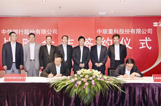 7月12日,中信銀行公司業務批發總監竇榮興與中聯重科副總裁蘇用專在中聯重科麓谷工業園簽署了《銀企戰略合作協議》,中信銀行行長朱小黃與中聯重科董事長詹純新,副總裁何文進、洪曉明等領導見證了簽約儀式。此次協議的簽署,旨在增進相互了解,加強互惠合作,共同開創銀企合作的新篇章。