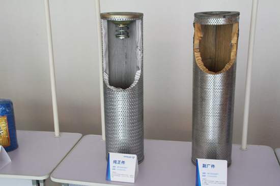 為了讓客戶更直觀地了解正廠備件與副廠備件在設備使用過程中造成的不同影響,中聯重科服務工程師姜旭東為在場客戶進行了中聯工起液壓油濾芯的現場實物演示和講解。