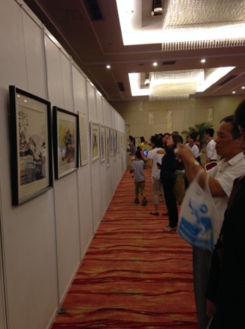 此次活動展出畫作46幅,共有112幅畫作及衍生品參與義賣?;顒蝇F(xiàn)場賓客云集,并吸引了包括美國駐成都領事館大使、新加坡大使、四川省藝術研究院副院長等各界人士到場,各位熱心人士踴躍參與義賣。
