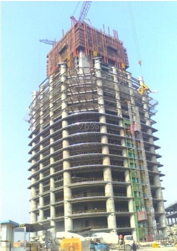 截止11月4日24點,伴隨著最后一車混凝土順利澆筑,武漢中心項目結構高度達到100.9米,突破百米大關。