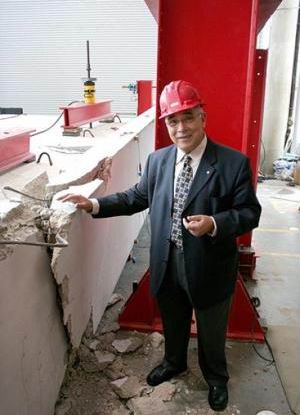 圖片:Sami Rizkalla博士解釋說,通過測試新的混凝土梁的設計,看它可以承重多少,研究人員已經確定,它的承重比預期的最大承重還要大2至3倍