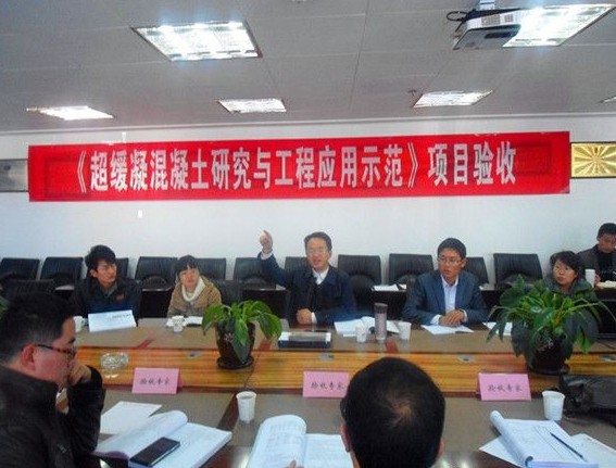 李章建在驗收會議上介紹了項目的大背景,指出超緩凝混凝土的技術(shù)及施工難點,并根據(jù)公司的研究及工程應(yīng)用情況形成了地方標(biāo)準(zhǔn),填補了云南省建筑超緩凝混凝土相關(guān)規(guī)范的空白,為大規(guī)模的規(guī)范性使用超緩凝混凝土提供了指導(dǎo)和可靠依據(jù),推動了云南省混凝土技術(shù)進步。副總工程師梁麗敏博士詳細(xì)匯報了項目的驗收內(nèi)容、考核指標(biāo)、超緩凝混凝土的試驗技術(shù)方案,以及其在實際工程當(dāng)中的應(yīng)用情況。五位專家針對該項目的關(guān)鍵問題進行了提問,李章建等對專家的問題進行了一一詳細(xì)解答,超緩凝混凝土項目獲得了與會專家的高度認(rèn)可和贊揚。
