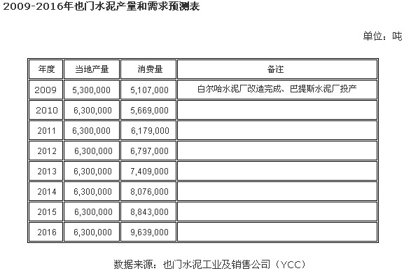 展周期有著密切的關系。未來幾年,盡管在金融危機和國際經濟衰退陰影的影響下,也門的水泥工業會伴隨著基礎設施的加大建設而進入高速發展期,水泥工業是非能源領域政府優先發展的重點領域。