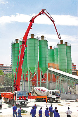 6月8日,價值達400余萬元,布料高度逾50米,排量達每小時170立方米,代表目前國內泵車最高水平的SY5385THB-50混凝土泵車落戶蘭州宏建建材集團,這意味著在甘肅建筑業界頗有影響的蘭州宏建集團再添“火力”,將大大提升該集團的綜合實力。據悉,如此規模的泵車在甘、寧、青建筑市場可謂首屈一指。