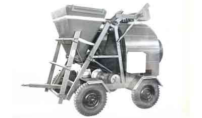 1973年設計,由上海市華東建筑機械廠生產的JSC-1雙錐形混凝土攪拌機,該機為正反轉自落式攪拌機,正轉攪拌、反轉出料。最大混凝土攪拌量為335公升,機重2.5t。