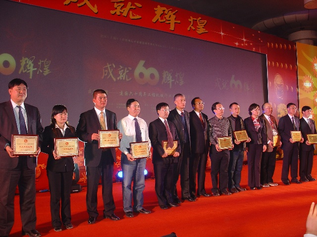南方路機喜獲60年工程機械行業成就展“十大專業品牌”獎,周煒(左四)代表領獎