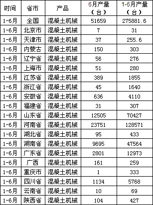 核心提示:2012年1-6月中國混凝土機(jī)械分省市產(chǎn)量數(shù)據(jù)統(tǒng)計