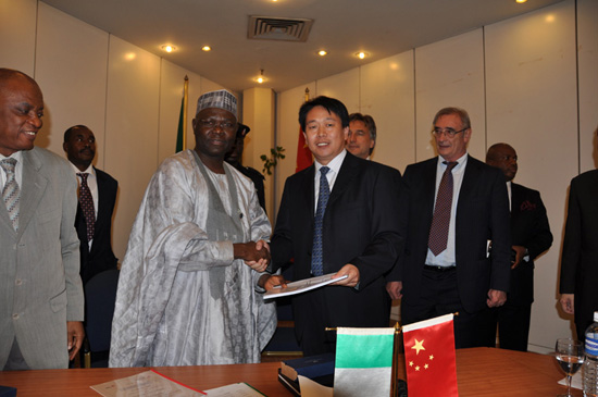 中國駐尼日利亞大使徐建國和中國駐尼大使館經商處參贊榮延松出席了合同簽字儀式。