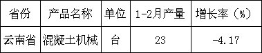 核心提示:2013年1-2月云南省混凝土機(jī)械產(chǎn)量