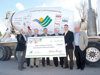 近日,中國混凝土網(wǎng)獲悉豪西蒙為兩種新型混凝土攪拌車舉行了揭幕儀式,并在儀式中向三家哈爾頓健康服務(wù)醫(yī)院捐贈了10萬美金。當(dāng)天出席儀式的有三家健康服務(wù)醫(yī)院的負(fù)責(zé)人以及加拿大分公司副總裁Nick Caccavella等。