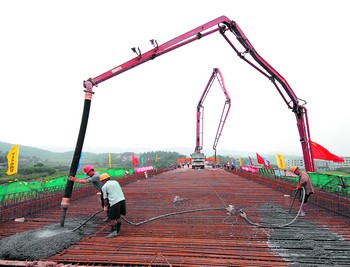 6月19日下午5時,中鐵四局武廣II標三項目隊順利完成了蘆荻塘特大橋第19跨梁320立方米混凝土的澆灌任務,至此,武廣客運專線蘆荻塘特大橋主體順利完工。蘆荻塘特大橋位于長沙縣跳馬鄉(xiāng),長867米,于2006年10月29日開工建設。