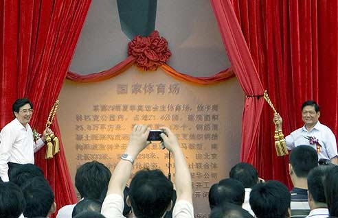 落成典禮上,劉淇書記、郭金龍市長為國家體育場落成紀念柱揭幕。北京市副市長、市“2008”工程指揮部指揮陳剛向國家體育場有限責任公司董事長李愛慶同志交付竣工驗收合格證書。國家體育場參建單位還從市領導手中接過了紀念證書。