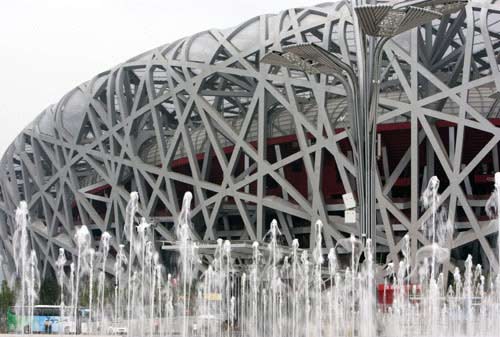 廣場上音樂噴泉與“鳥巢”遙相呼應