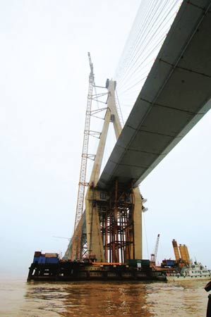這樣的設計在施工中遇到不少困難,特別是大跨徑斜拉橋,如進入臺風期鋼箱梁尚未安裝完成的話,將對大橋造成極大威脅,“這是整個工程中最難的一個部分,也是最關鍵的?!彼f。
