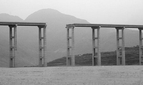路到紫坪鋪水庫附近時,開始出現一座座盤在山腰上的大小橋梁。地震前,這些橋梁每天車輛穿梭。地震使這一切發生了巨大的變化:有的橋墩嚴重變形,護欄損壞脫落,車經過時感覺搖搖欲墜;有的可清晰看到橋面移位,車輛要靠向另一側行駛;有的橋面直接被墜石砸穿一個大洞。省公路局副局長羅玉宏說,都汶路沿線大小橋梁都是在“重病”服務,各種大小車輛每天從這些橋上通過,原本已損壞的橋梁正在慢慢惡化,對任何車來說都是涉險通行,說不準哪一個時刻就達到臨界點而發生垮橋。