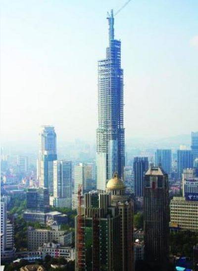 這個高度位居“江蘇第一”毋庸置疑,就是放在全世界也是排名前列,到下月它將躋身世界第五,今后將位列第七。在已建成和封頂的摩天大樓中,排在世界前四位的分別為臺北101大樓,高度508米;上海環球金融中心,高度492米;吉隆坡雙子塔,高度451.9米;美國西爾斯大廈,最終高度超過450米。超過800米的阿聯酋迪拜塔和490米的香港環球貿易中心正在建設,它們建成后,綠地廣場的“紫峰”將退居世界第七。