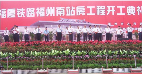 昨天(2日)早上,福州倉山南臺島的臚雷村,鑼鼓喧天、鞭炮齊放,數(shù)十輛各種施工機(jī)械啟動工作,標(biāo)志著作為海峽西岸經(jīng)濟(jì)區(qū)省會中心城市形象門戶和海峽西岸重要綜合交通樞紐的福州火車南站正式開工建設(shè)。