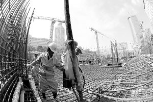 9月16日,建發(fā)現(xiàn)代城施工工地,工人們正在澆灌混凝土。
