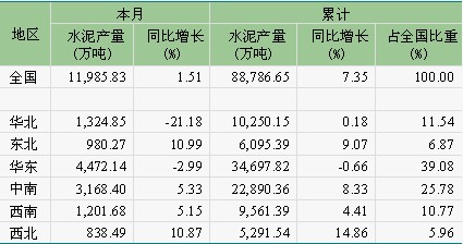 華東地區(qū)在8月出現(xiàn)負增長,華北也是零增長,數(shù)字水泥網(wǎng)通過和當?shù)卮笃髽I(yè)聯(lián)系,認為四季度水泥需求將逐步轉(zhuǎn)旺,但增長幅度不會很高。