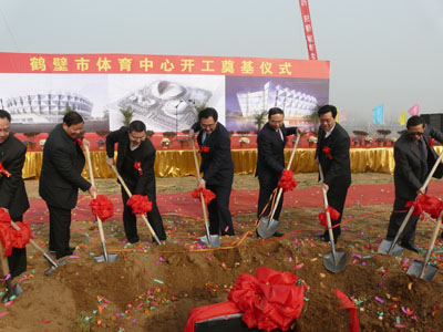 鶴壁市長丁巍在致辭中代表市四大班子對體育中心的開工表示熱烈的祝賀。他說,體育中心工程建設是我市與中建七局采取BT模式合作建設的大型項目,它的開工建設對提升城市品位具有十分重大的意義。他希望全市各有關方面和單位要強化責任意識、服務意識,積極為體育中心工程的順利建設創造一流的服務環境。